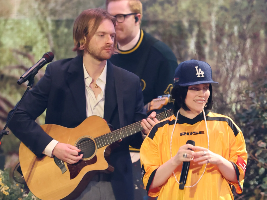 The siblings, who have become one of music’s most iconic creative duos, once again proved that less is often more. Finneas, seated at a grand piano under dim lighting, began with a few soft, deliberate notes. Billie soon joined in, her voice nearly whispering at first—clear, trembling, and intimate. Dressed in her signature oversized attire, she stood almost motionless, letting the raw emotion of the song carry the weight. It was the kind of performance that didn’t need spectacle to be unforgettable.