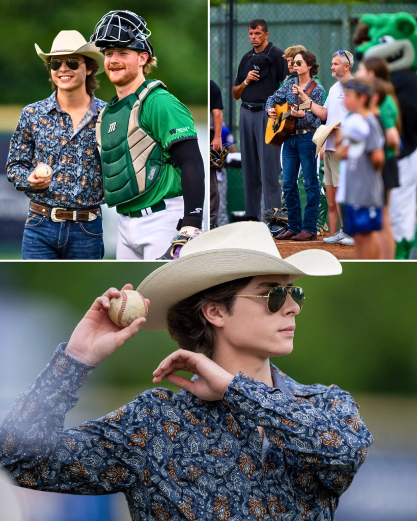 Then he grabbed the ball and fired off the ceremonial first pitch. No wild bounce, no nerves, no fuss. He threw it clean, grinned like he was born for it, and strolled off the field like the ballpark was just another stop on his summer tour. For all intents and purposes, it is.