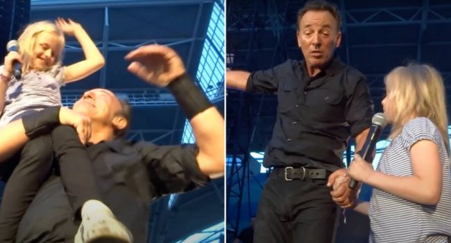 In the middle of the song, Springsteen noticed a young girl in the audience, filled with excitement and energy. As part of his signature concert style, which often involves connecting closely with his fans, Springsteen invited the girl onto the stage. The audience erupted in applause as the child, wide-eyed with awe, joined one of rock’s greatest icons in the spotlight.
