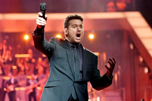 Opening with a Bond-worthy orchestral blast, Bublé emerged like a man on a mission. The smoldering horns, shadowy lighting, and pounding percussion set the tone, but it was his voice — rich, razor-sharp, and drenched in heartbreak — that carried the performance to another level. He didn’t just sing the song — he owned it, pacing the stage like a betrayed lover holding court in a smoky nightclub.