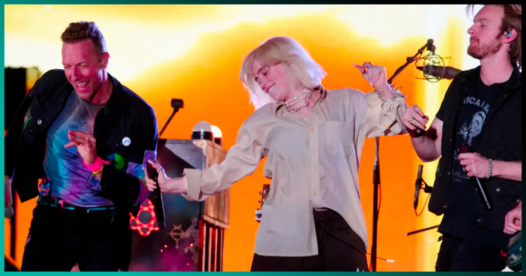 As Chris Martin’s piano keys began to softly echo through the night, the audience held their collective breath, unsure of what was about to unfold. Then, Billie Eilish and FINNEAS emerged, adding their own signature voices to the already powerful ballad. The result wasn’t just a duet — it was a beautiful fusion of talent, heartache, and healing. It was a perfect blend of Coldplay’s iconic sound, Billie’s haunting vulnerability, and FINNEAS’ subtle yet powerful presence.