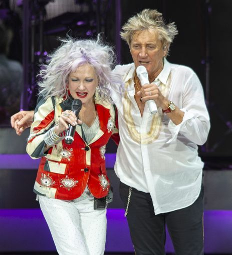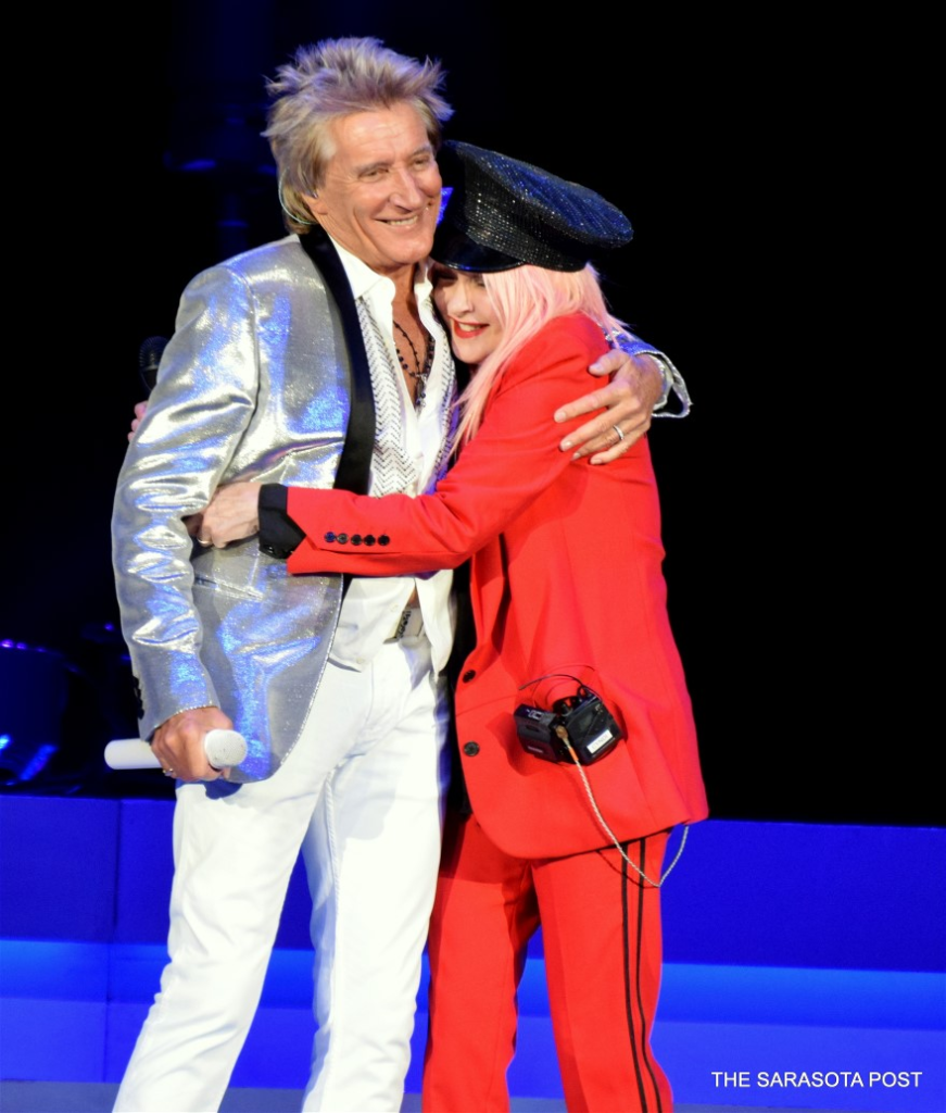 Cyndi bounced across the stage with the giddy spark of her “Girls Just Want to Have Fun” days, while Rod, ever the showman, leaned into the groove with that unmistakable raspy croon that made him a household name. Their voices collided and melted in all the right places — hers bright and punchy, his rich and worn like a leather jacket that only gets cooler with age.