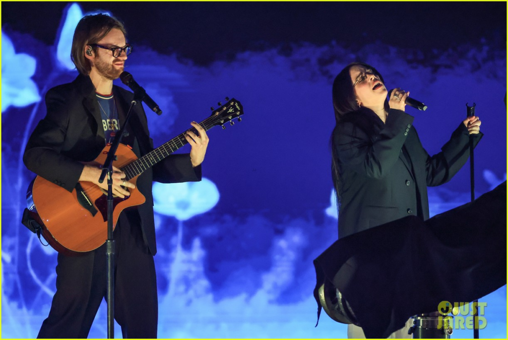Each note floated into the air like petals on wind, soft yet resolute. The audience sat spellbound as Billie’s haunting vocals bled vulnerability and strength in equal measure, embodying the raw beauty of an untamed heart. With subtle defiance, she turned fragility into power and made stillness feel like a roar.