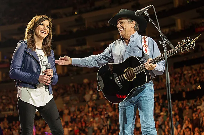 It started with a guitar strum — casual, almost teasing — and then George Strait leaned into the mic with that cool, unshakable drawl: “We got married in a fever…” Before the crowd could finish screaming, Martina McBride fired right back with a grin and vocals that could split the sky.