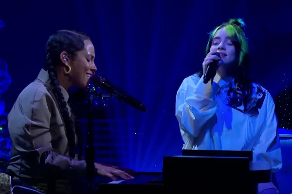 Billie, with her signature whisper-soft delivery, sang with a vulnerability that made each note feel like a confession. Her voice, usually filled with quiet intensity, was now woven together with Alicia Keys’ rich, velvety harmonies. Keys, the seasoned powerhouse, matched Billie’s softness with a grounded warmth, creating a delicate balance of power and fragility.